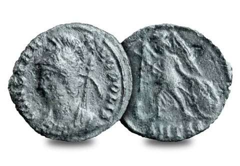 This exclusive collection features two genuine bronze coins minted under Emperor Constantine the Great (between AD 330–346).