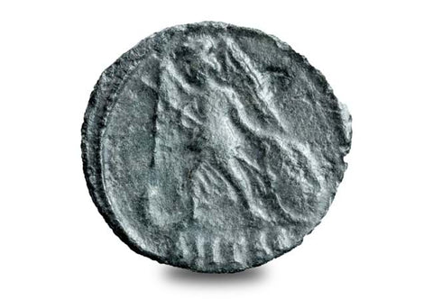 Constantinople Coin: Personification of Constantinople with the goddess Victoria, foot resting on a ship’s bow.