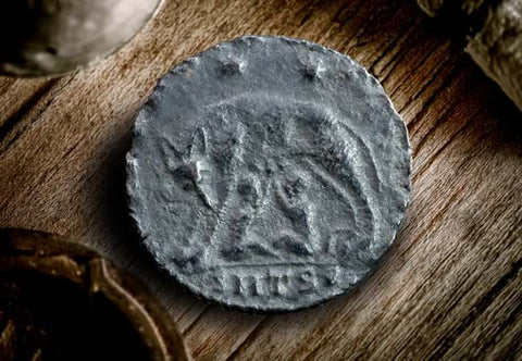 Rome Coin: Capitoline she-wolf suckling Romulus and Remus – the mythic founders of Rome.